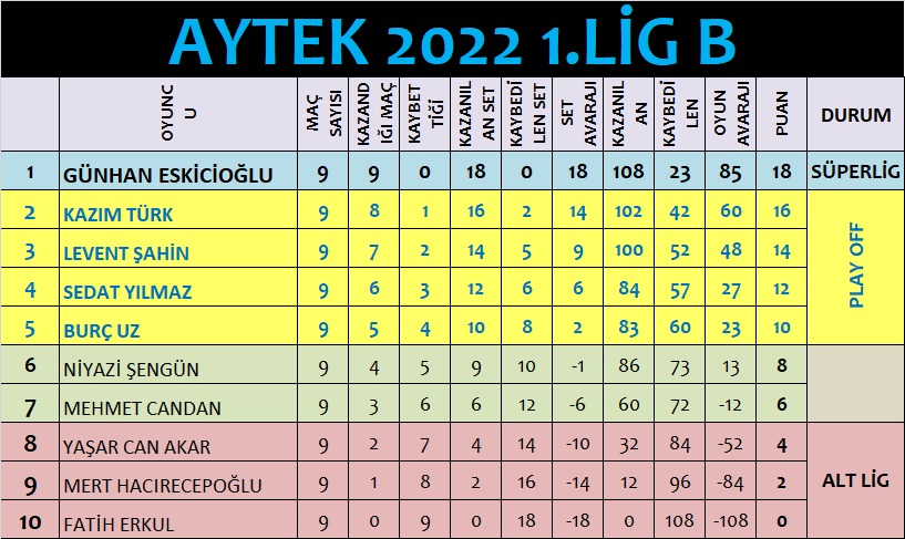 | AYTEK 2022 1.LİG B | ||||||||||||