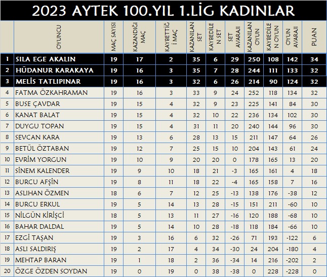 | AYTEK 2023 KIŞ 1.LİG KADINLAR | |||